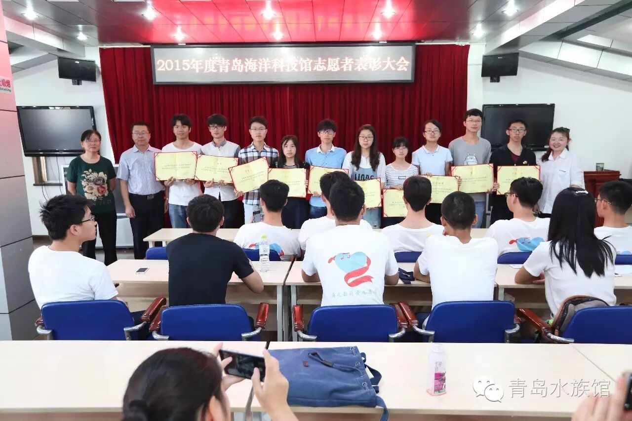 会上对获得优秀志愿者一等奖的林锟等10名同学及获得二等奖的张若鹏等16名科普志愿者进行了表彰,其他志愿者获得了鼓励奖。大家纷纷表示在今后的科普志愿者工作中将再接再厉,迈上新的台阶。会后与会人员合影并参观了海底世界。整个会议议程简短,气氛热烈,圆满地完成了2015年度志愿者工作任务。
