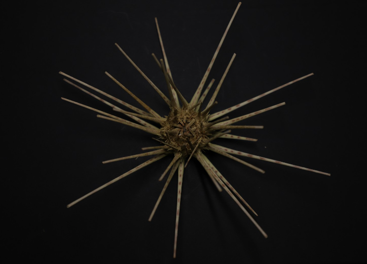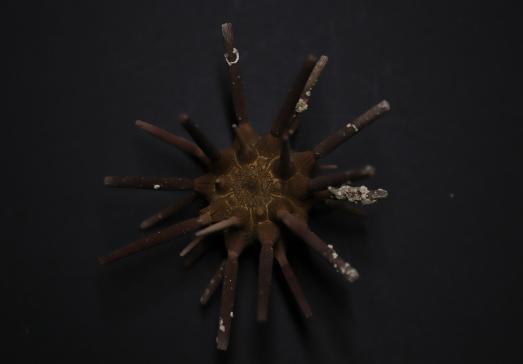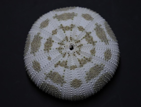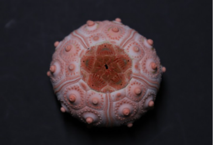 海胆纲(Echinoidea)体呈球形、盘形或心脏形,无腕。内骨骼互相愈合,形成一个坚固的壳,分三部:第一部最大,由20多行多角形骨板排列成10带区,5具管足的步带区和5个无管足的步带区相间排列,各骨板上均有疣突和可动的长棘。第二部称顶系,位反口面中央,由围肛部(periproct)和5个生殖板及5个板眼(ocular plate)组成,生殖板上各有一生殖孔,有一块生殖板多孔,形状特异,兼作筛板的作用;板眼上各有一眼孔,辐水管末端自孔伸出,为感觉器;围肛部上有肛门。第三部为围口部,位口面,有5对口板,排列规则,各口板上有一管足,口周围有5队分支的鳃,为呼吸器官。多数种类口内具复杂的咀嚼器,称亚里士多德提灯(Aristotle’s lantern),其上具齿,可咀嚼食物。消化管长管状,盘曲于体内,以藻类、水螅、蠕虫为食。多雌雄异体,个体发育中经海胆幼虫(长腕),后变态成幼海胆,经1~2年才达性成熟。现存900种,化石有7000多种。可分为规则海胆亚纲(Endocyclica)不规则海胆亚纲(Exocyclica)两个亚纲,22目。分布在从潮间带到几千米深的海底,多集中在滨海带的岩质海底或沙质海底,或有广泛的分布,或局限在特定的海域,因种而异。